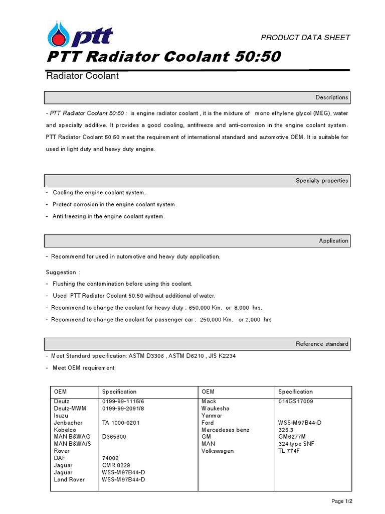 PTT Radiator Coolant 50 50 Eng PDF Chemical Substances Chemistry
